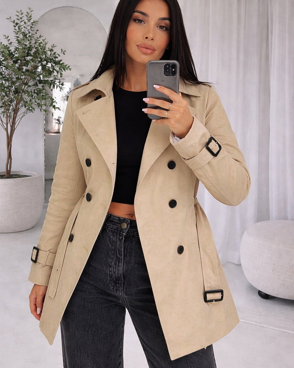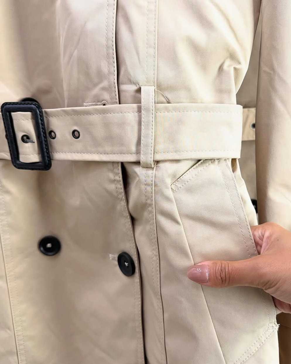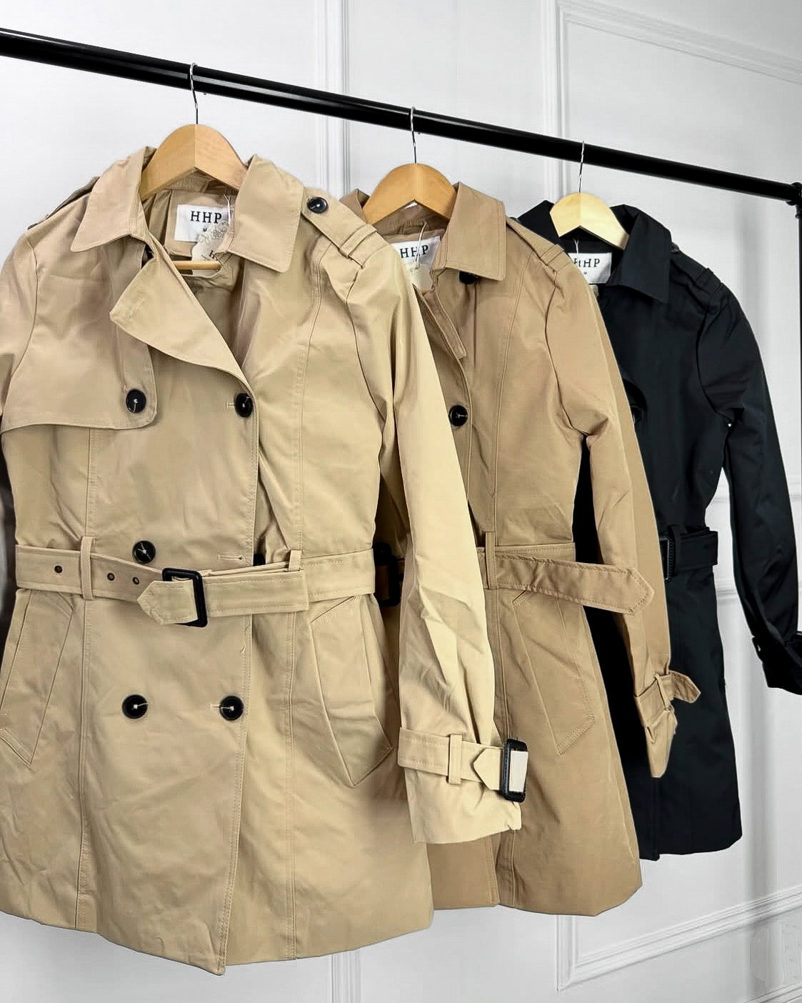 Detalle: Tapado abierto con botones. Largo por debajo de la cola. Cinturon con hebilla. Tambien cinto y hebillas en mangas. Calce perfecto.
