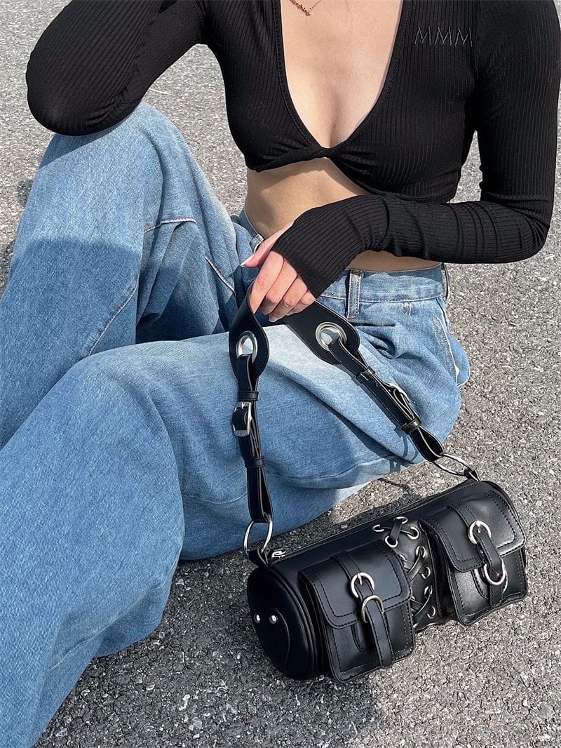 DETALLES: Detalles en plateado. Dos bolsillos tipo cargo delateros. Detalle en delantero cartera.