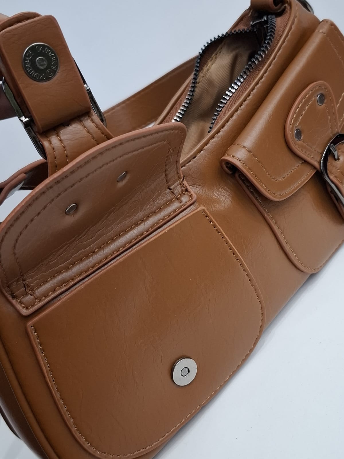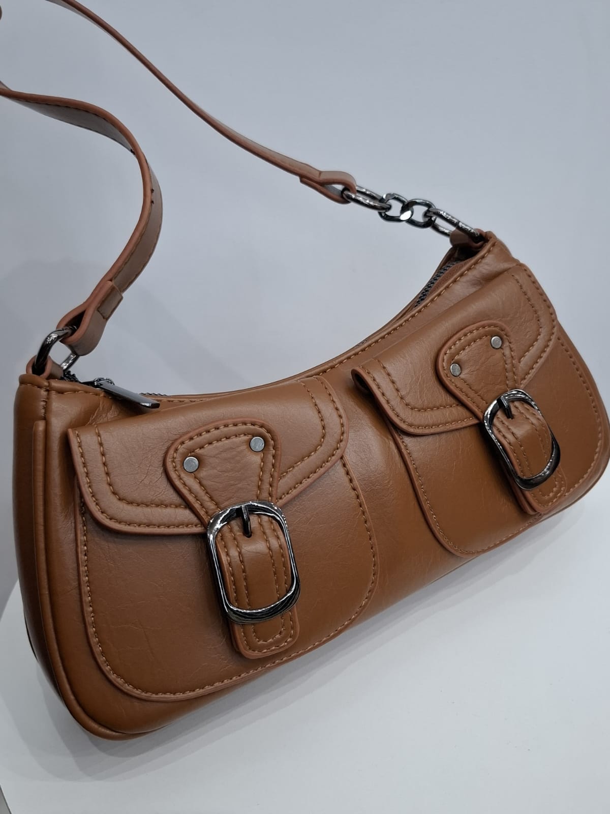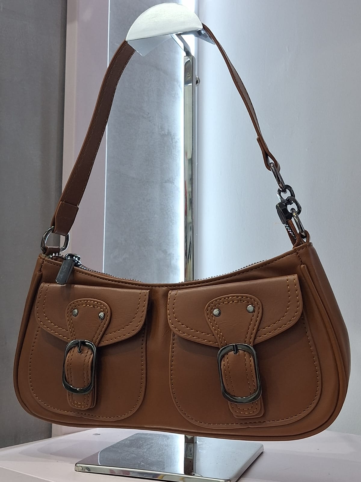 DETALLES: Detalles de hebilla de cinto en bolsillo delantero.