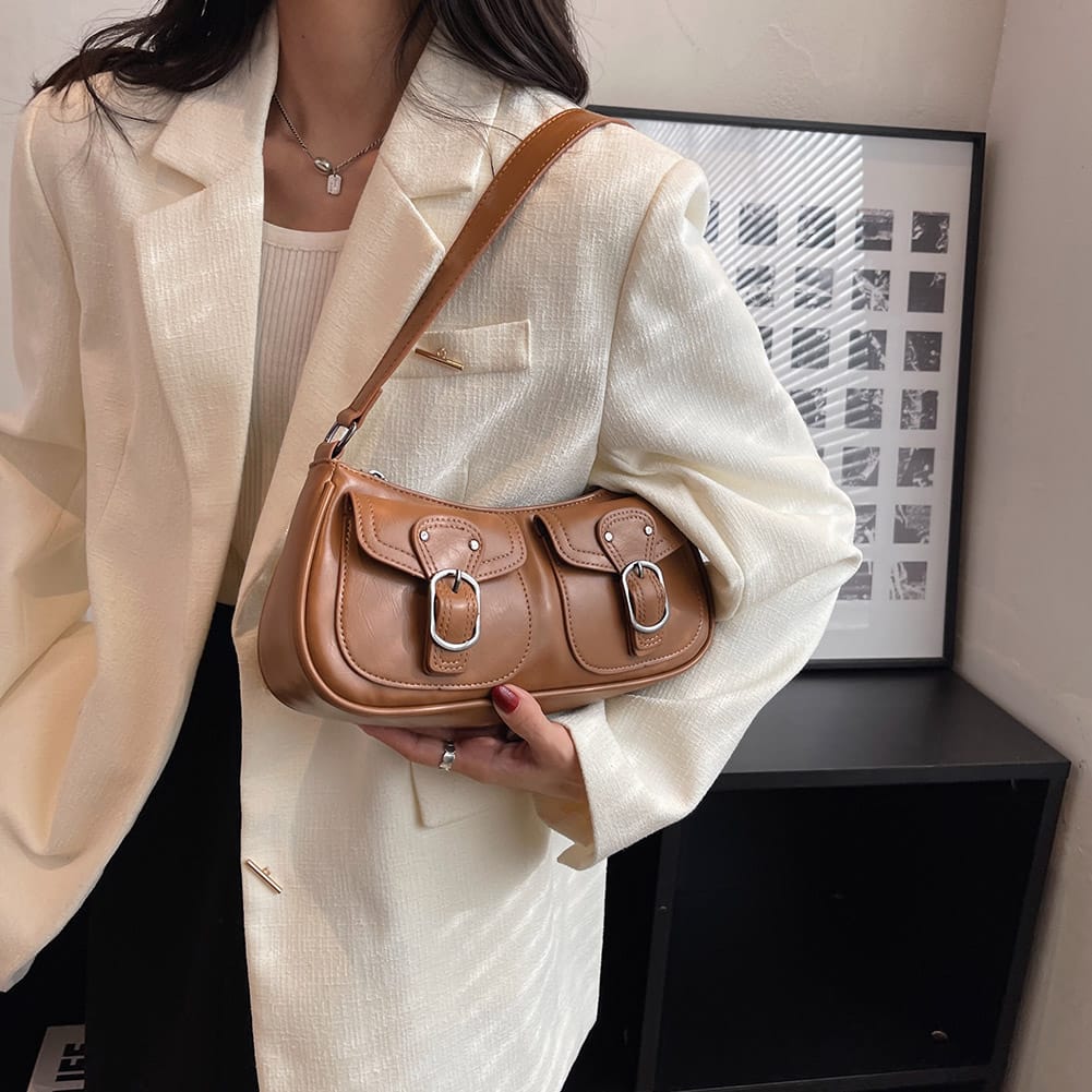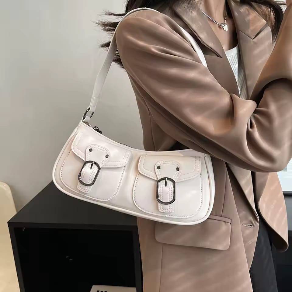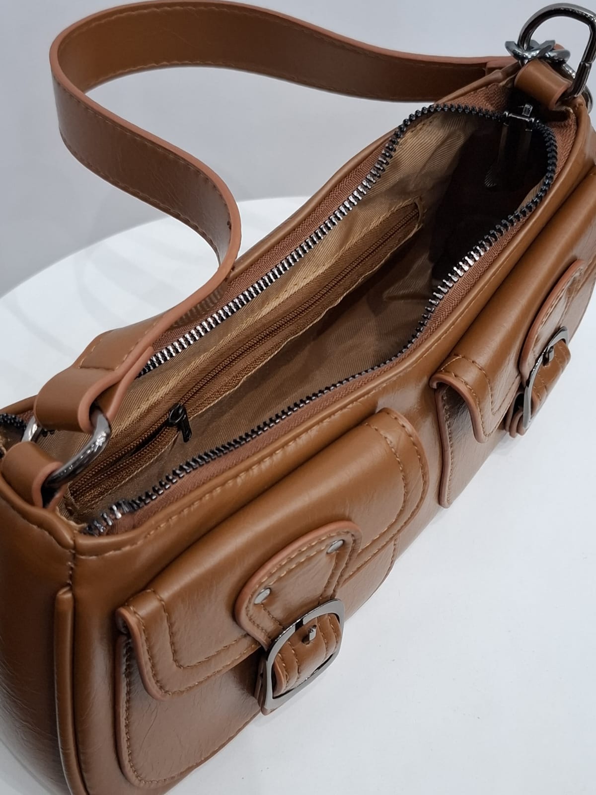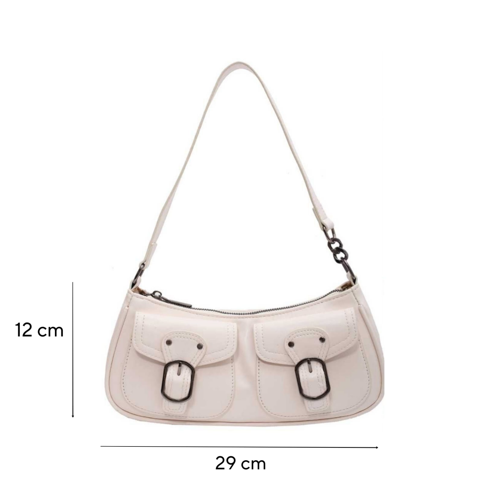 DETALLES: Detalles de hebilla de cinto en bolsillo delantero.