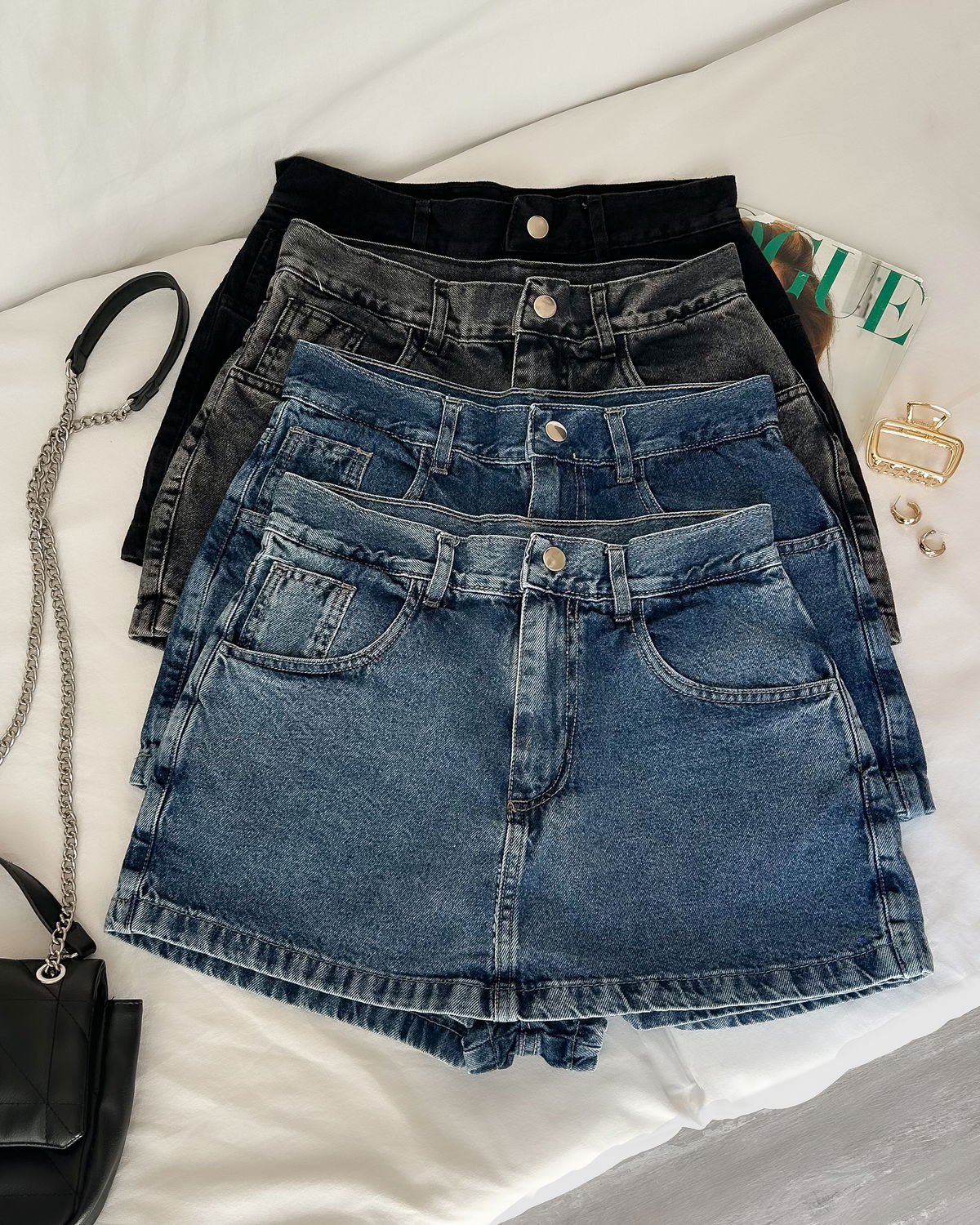 DETALLES: Short pollera clásica, tiro alto con bolsillos delateros