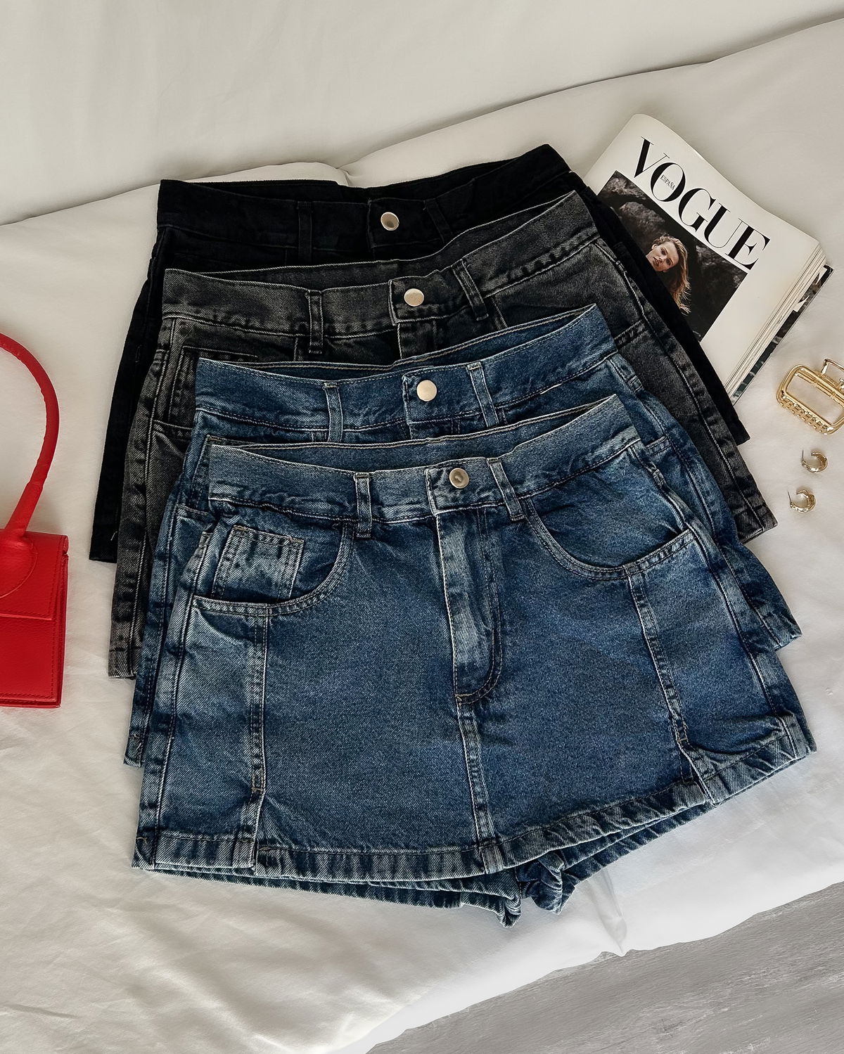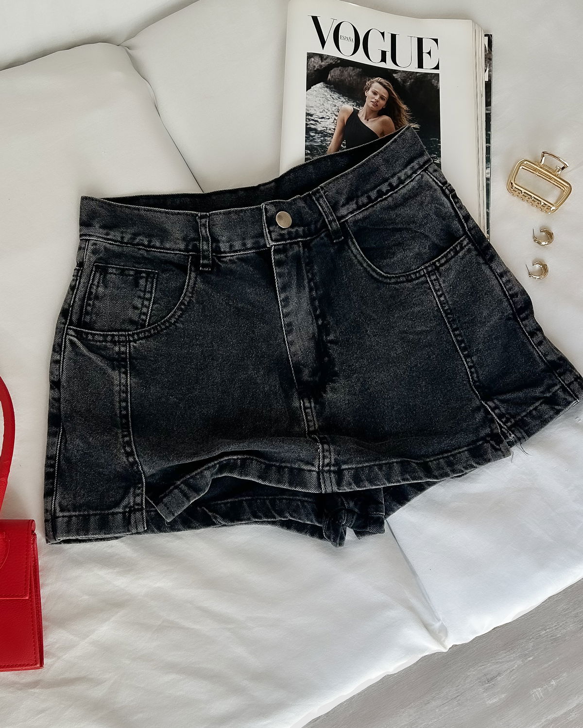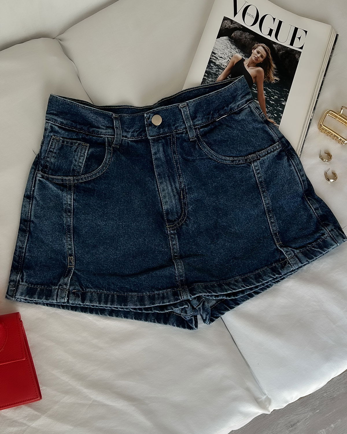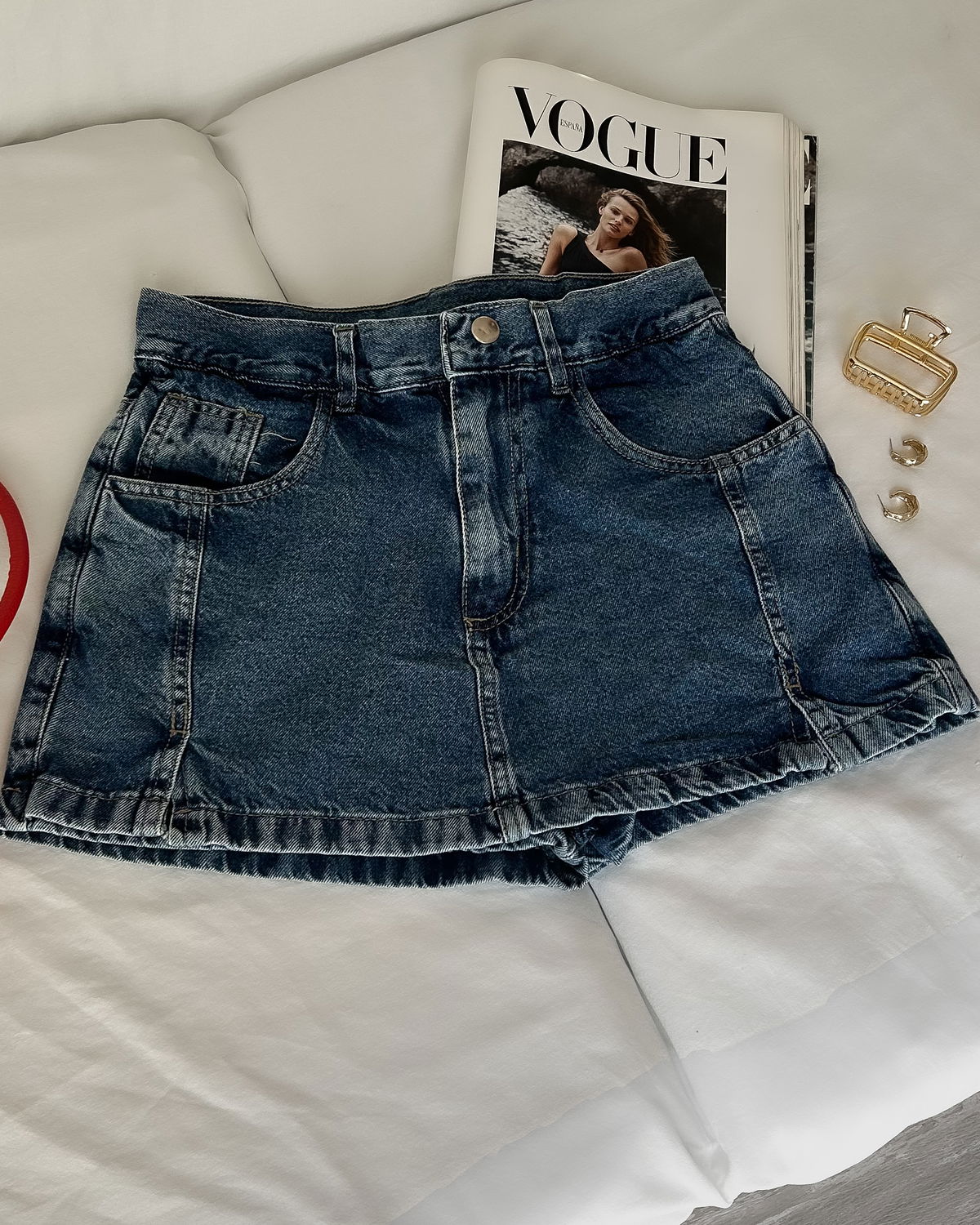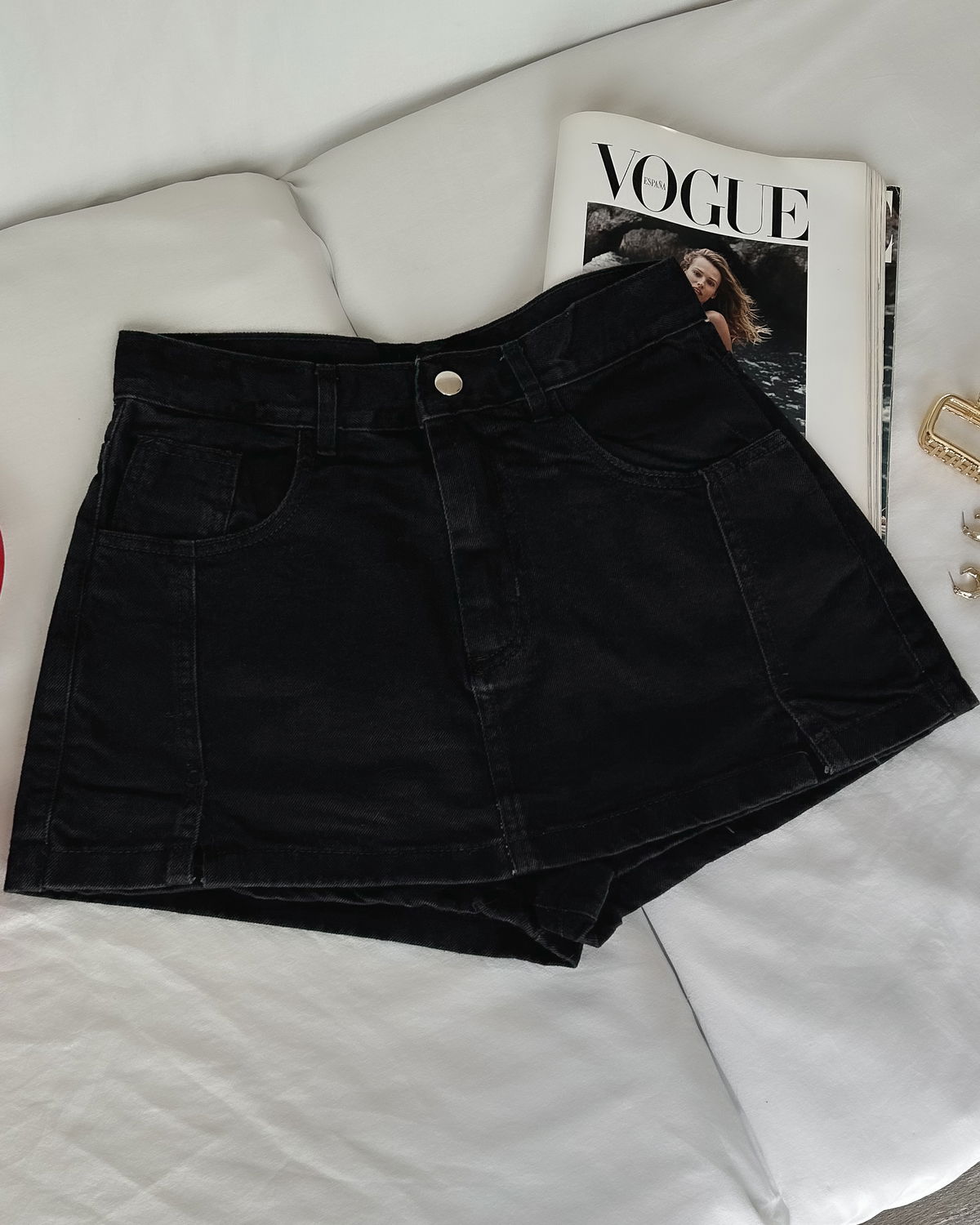 DETALLES: Short pollera clásica con costuras delateras, tiro alto con bolsillos delateros